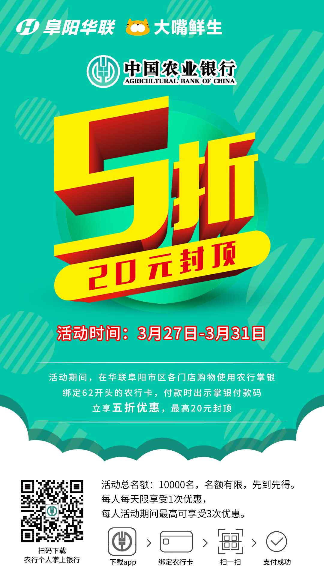 3月27日至31日,中國農行攜手阜陽(yáng)華聯(lián),