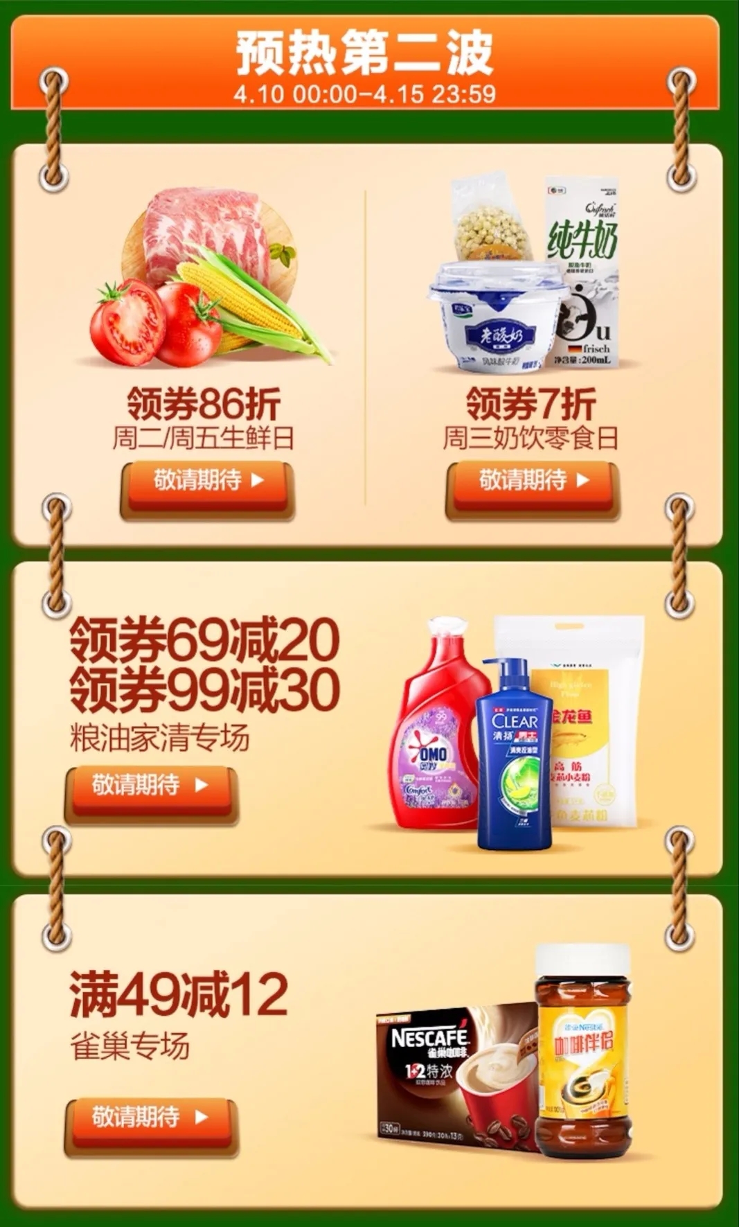 生鮮、奶飲零食、糧油、折扣區