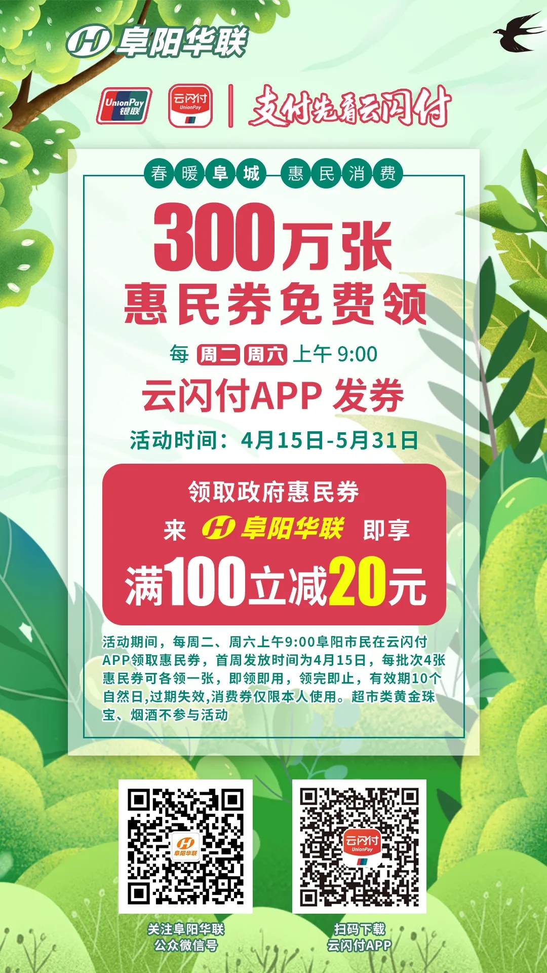 領(lǐng)政府惠民券,來(lái)阜陽(yáng)華聯(lián)購物