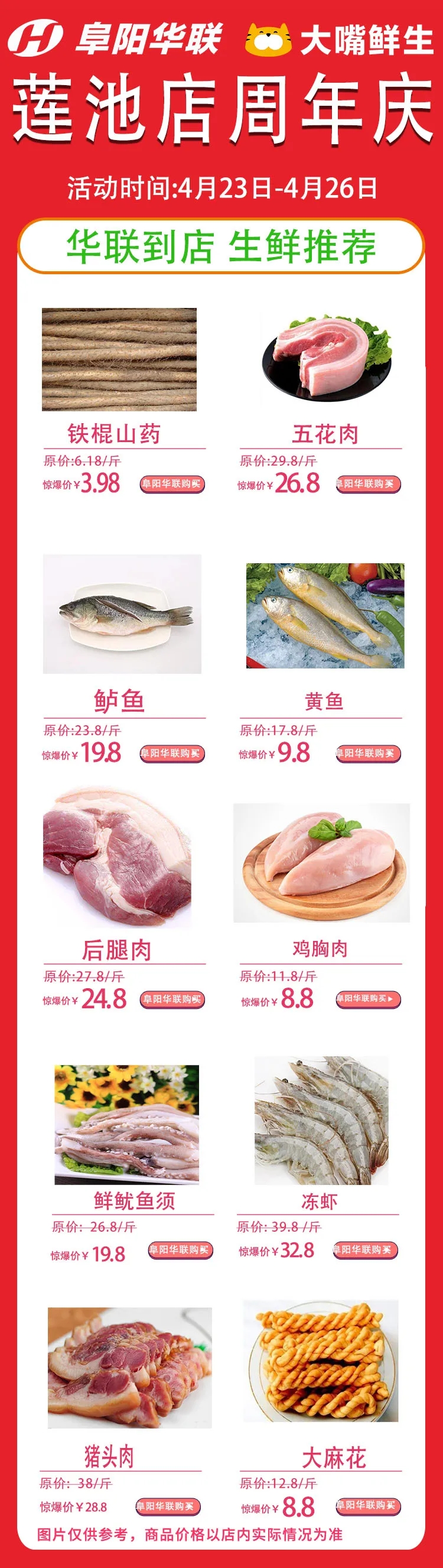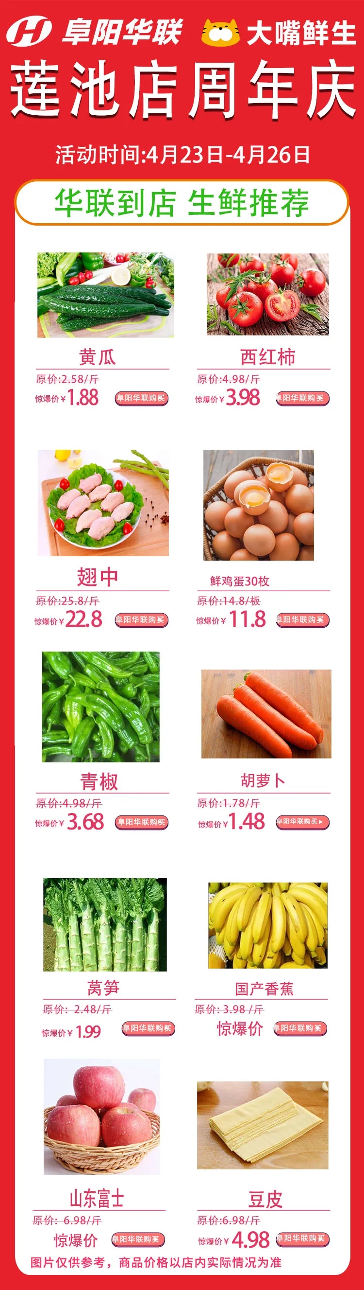 1:生鮮特價(jià)周年慶期間,每日都有優(yōu)惠商品,日日不間斷!