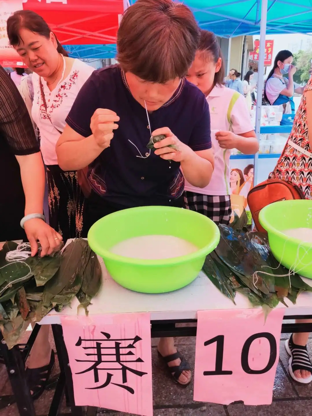 包粽子大賽現場(chǎng),選手們麻利的動(dòng)作,嫻熟的手法吸引了許多顧客的圍觀(guān)