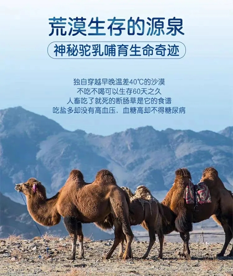 生活在大自然牧場(chǎng)的駱駝為我們孕育出最純凈的奶源。