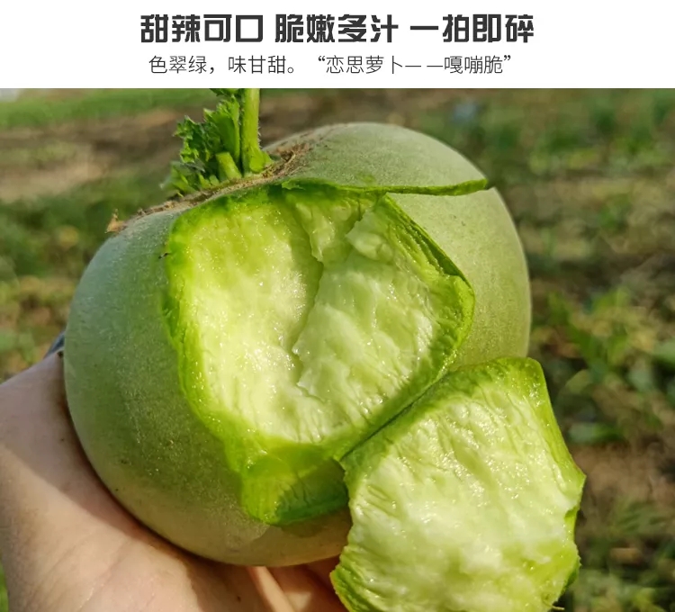 戀思蘿卜又名“鴨蛋酥”。卵圓形,外皮翠綠、質(zhì)脆味甜、食之如梨、無(wú)絲無(wú)渣、營(yíng)養豐富,放水中能自動(dòng)炸皮、落地則可摔成數瓣。戀思蘿卜產(chǎn)于阜陽(yáng)市西湖鎮(舊稱(chēng)大田集),位于阜陽(yáng)西三十華里之處。