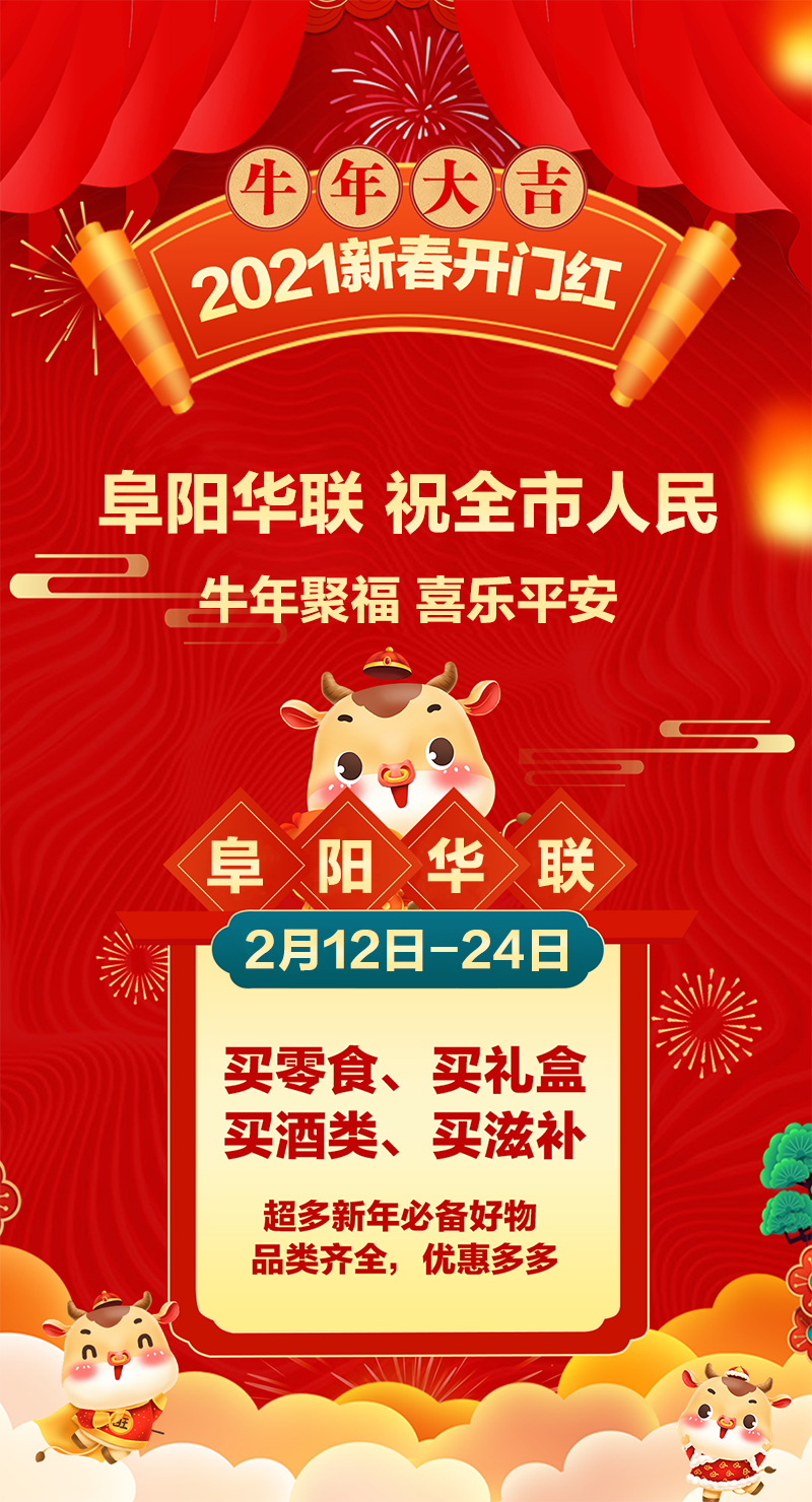 阜陽(yáng)華聯(lián)為了給大家送上一份溫暖的開(kāi)年驚喜,特推出“新年開(kāi)門(mén)紅”福利活動(dòng)。