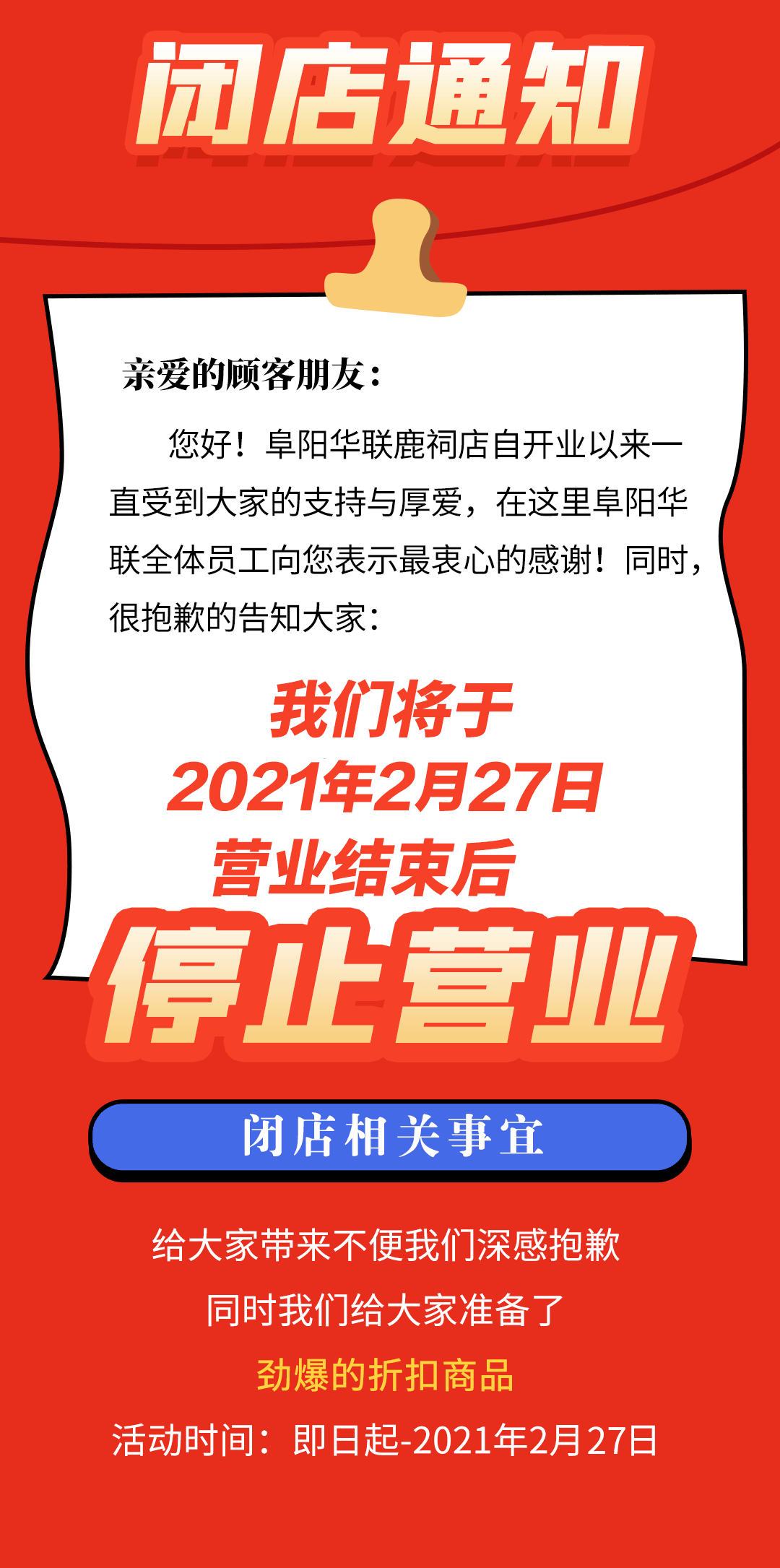 便利/陪伴,是你給阜城留下的印象!即日起,回饋阜城/閉店狂歡!
