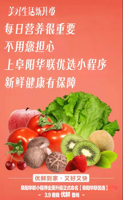 阜陽(yáng)華聯(lián)優(yōu)選小程序全面升級,3月9日優(yōu)鮮登場(chǎng)免郵配送啦!