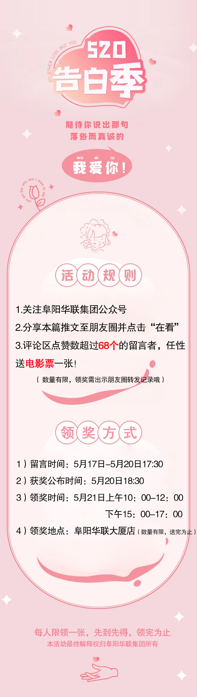 感謝小伙伴們參與: 阜陽(yáng)華聯(lián)優(yōu)選520大促 #留言送好禮活動(dòng)#