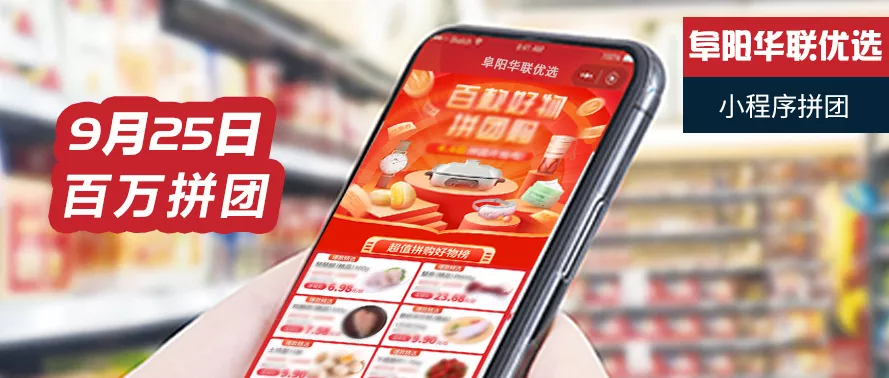 #9·25狂歡來(lái)襲# 阜陽(yáng)華聯(lián)優(yōu)選百萬(wàn)拼團,鉅惠不容錯過(guò)??!