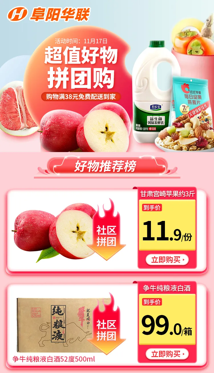 阜陽(yáng)華聯(lián)優(yōu)選 | 第47周周三拼團,主推>>潤燥美食+保暖好物!