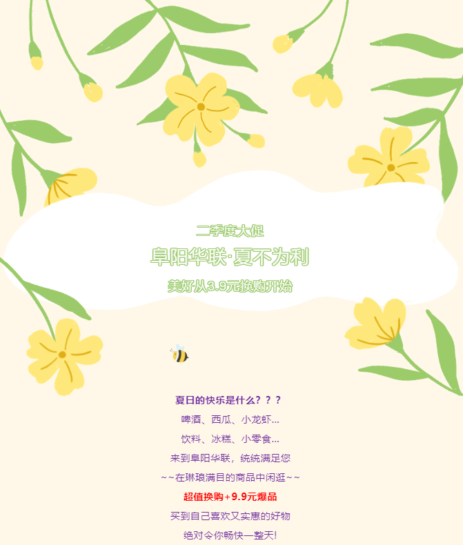 3.9元超值換購!阜陽(yáng)華聯(lián)二季度大促清涼開(kāi)啟!